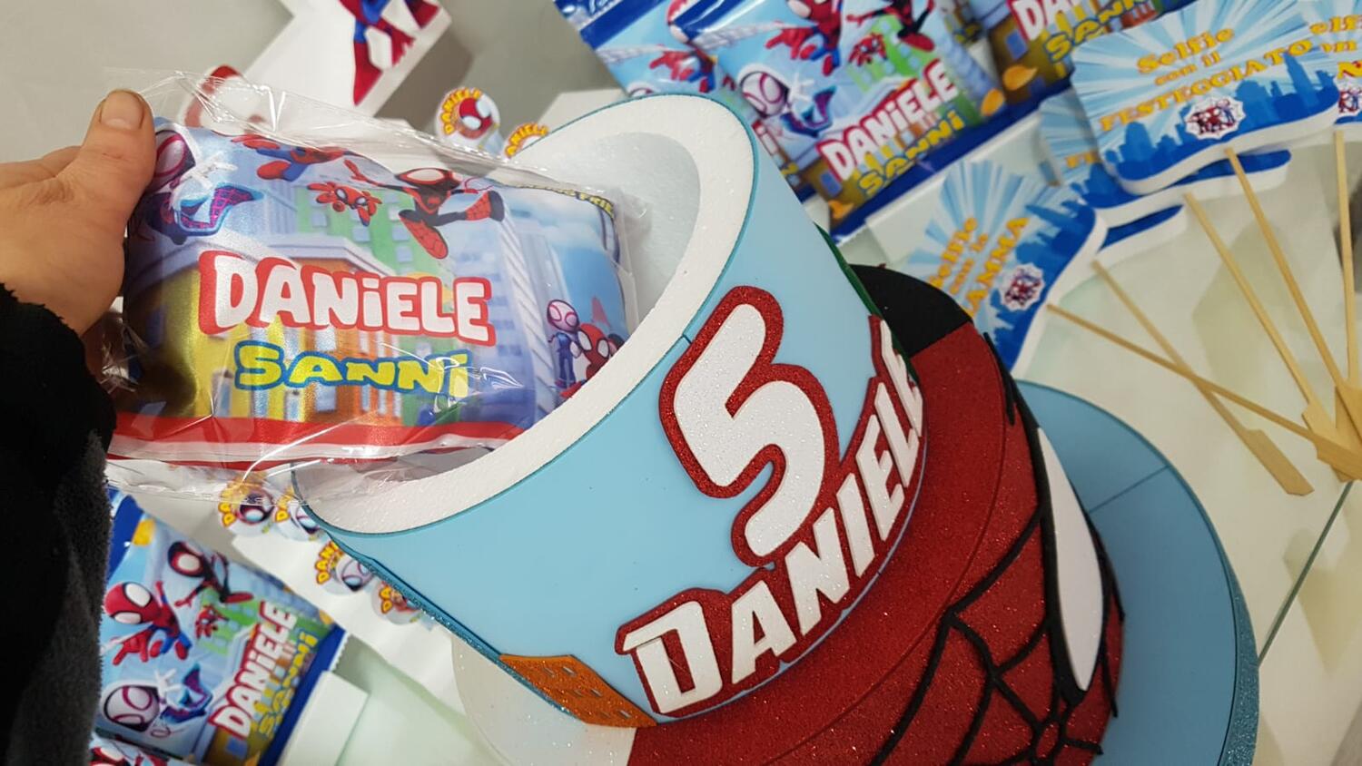 con porta sorpresa un piccolo cuscino personalizzato per il festeggiato